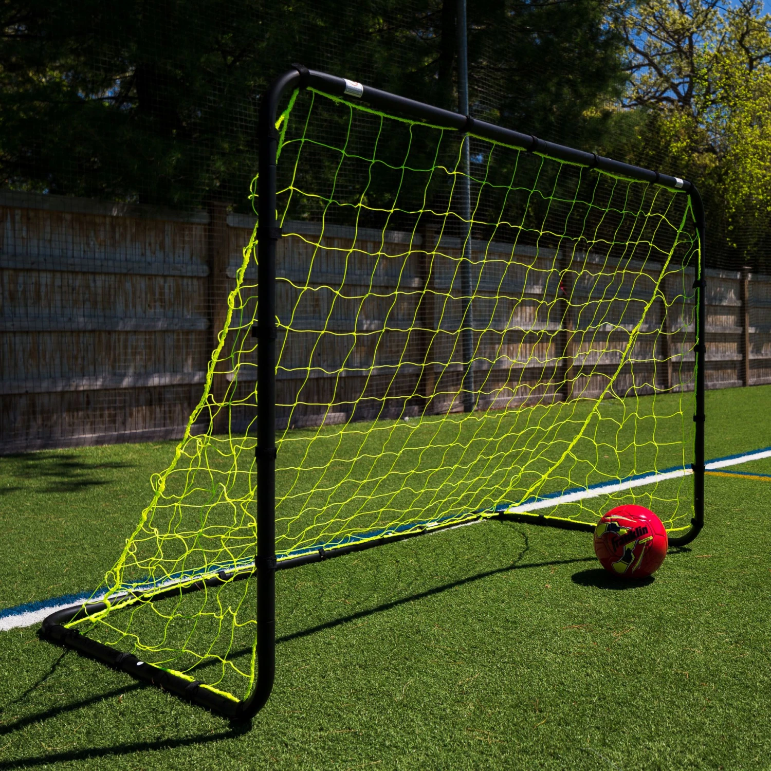 Designed for recreation play, the Franklin® 6’ x 4’ Powder-Coated Steel Soccer Goal features a lock/pull pin and galvanized ground stakes for added stability while aspiring players improve their goalkeeping skills.
