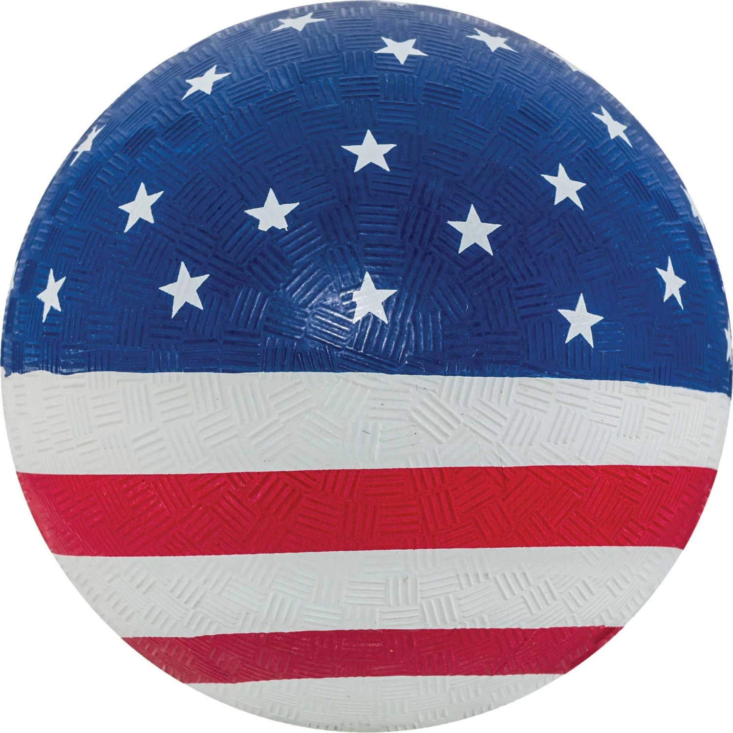 Perfect for playground, picnic, or cookout, the Franklin Americana Playground Ball is patriotic fun for all ages. This durable playground ball is made of smooth vinyl and boasts bold red white and blue graphics. Ideal for kickball, dodgeball, or just a classic game of catch, this 8.5-inch ball is soft and bouncy and can be used indoor or outdoor.