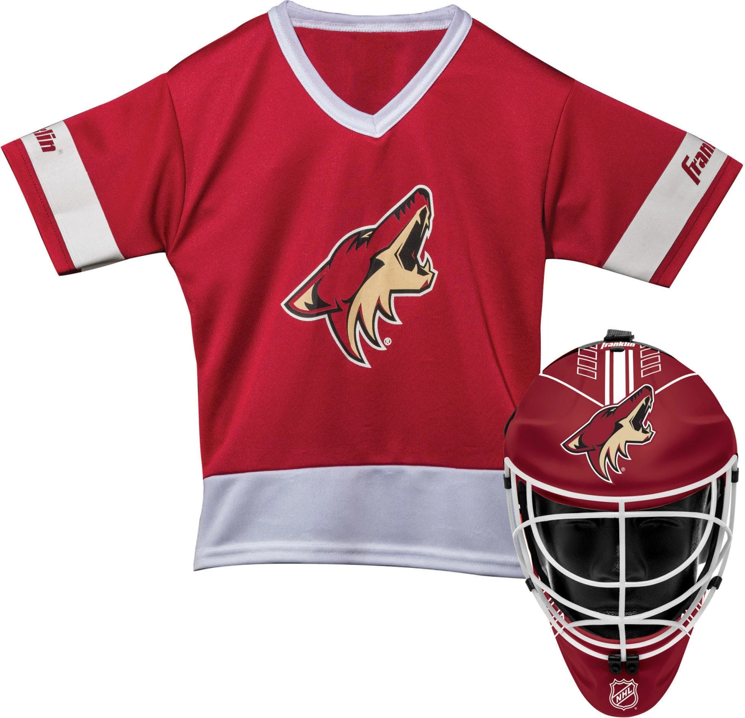 Make your kid feel like part of their favorite team with the Franklin® Arizona Coyotes Goalie Uniform Costume Set.
