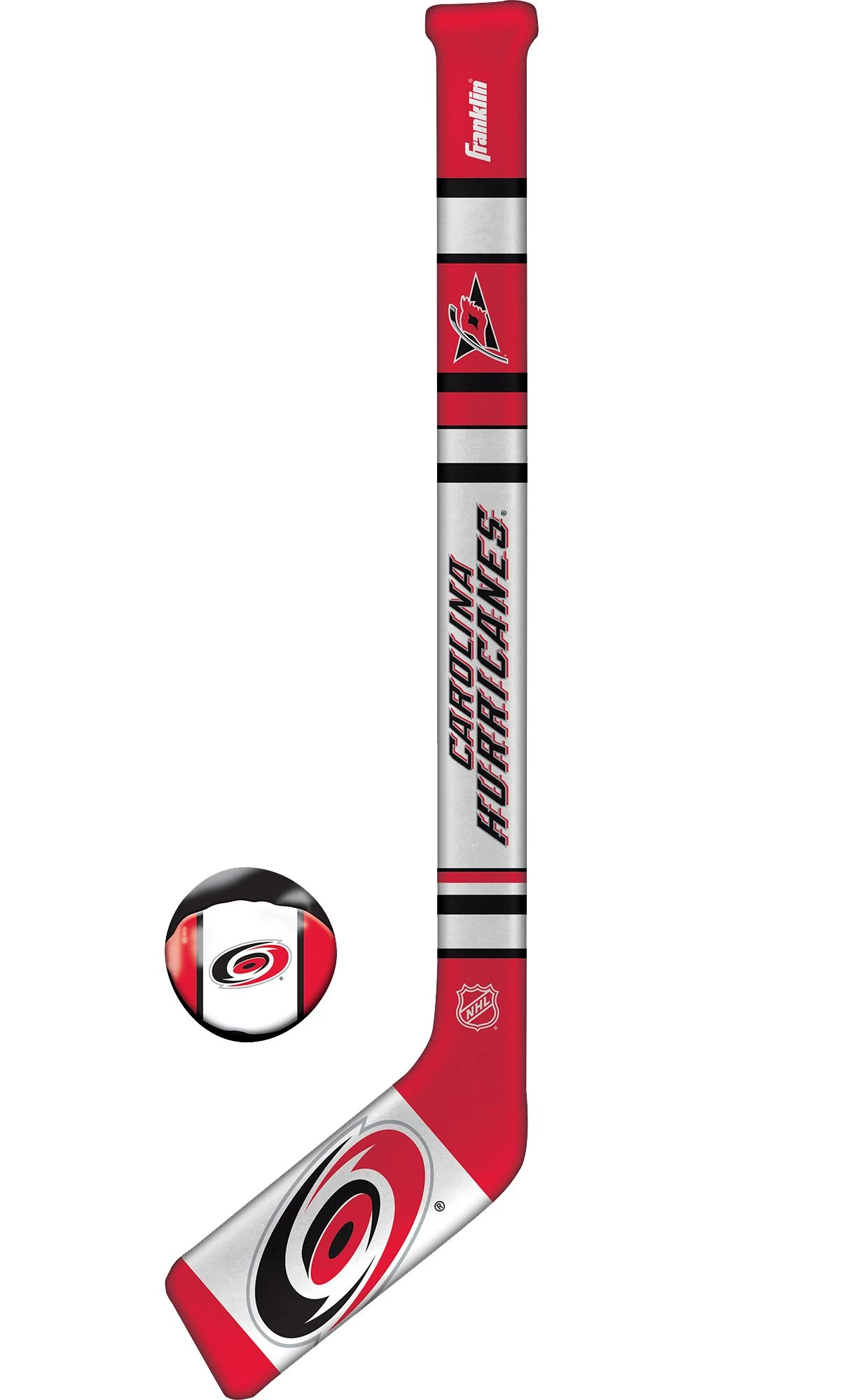 Reenact your favorite Hurricanes moments with the Franklin® Carolina Hurricanes Mini Hockey Set. Each mini hockey set includes a soft, team-inspired hockey stick and hockey ball, allowing you to perfect your skills indoors or out. Team colors, logos, and wordmarks decorate each piece of the set and remind you of your team as you work on your puck handling. Score a breakaway goal for your Hurricanes with the Franklin® hockey set.