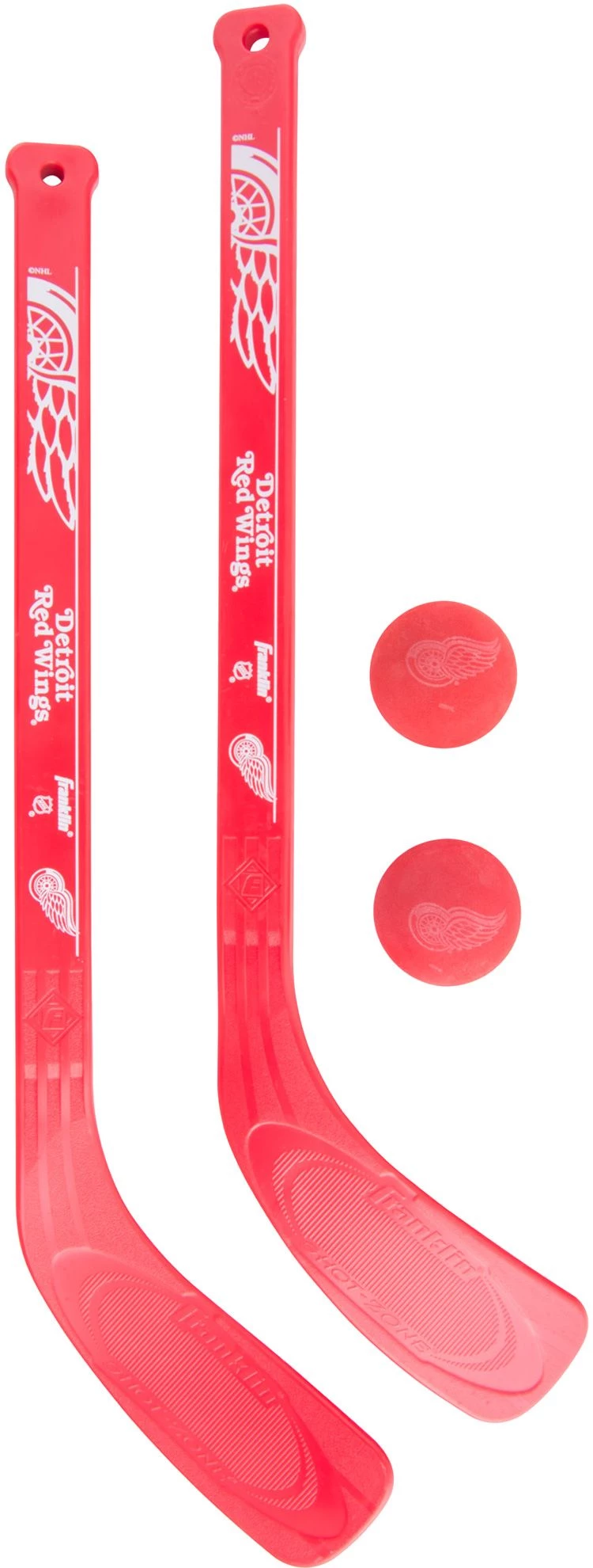 Earn your way onto the top power play unit with the Franklin® Detroit Red Wings Mini Stick Set. You are a natural born scorer thanks to the SHOT ZONE® textured blade. High-impact plastic offers durable construction while the 20″ stick keeps you in scoring range at all times. Salute your favorite team with the Red Wings wordmark and logo scanning your shaft. You are a mini hockey master with the Franklin® stick set.