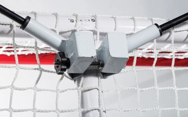 - Universal steel goal clamp attaches to back/center goal post (goal must have vertical center back post to work with backstop)
