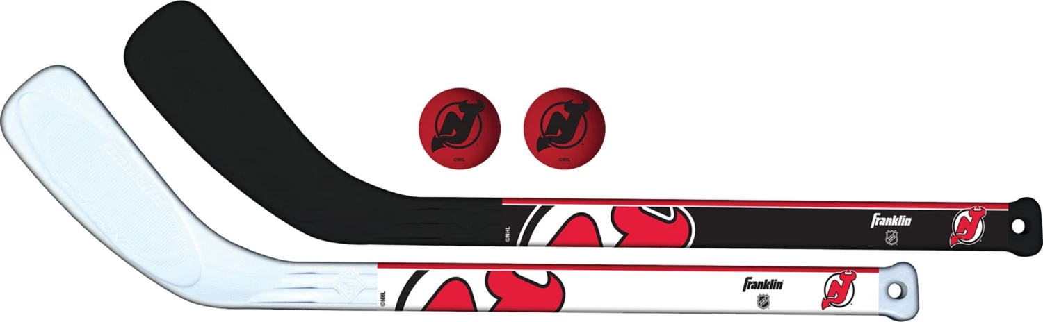 Shoot the puck like a pro with the Franklin® New Jersey Devils Mini Stick Set.