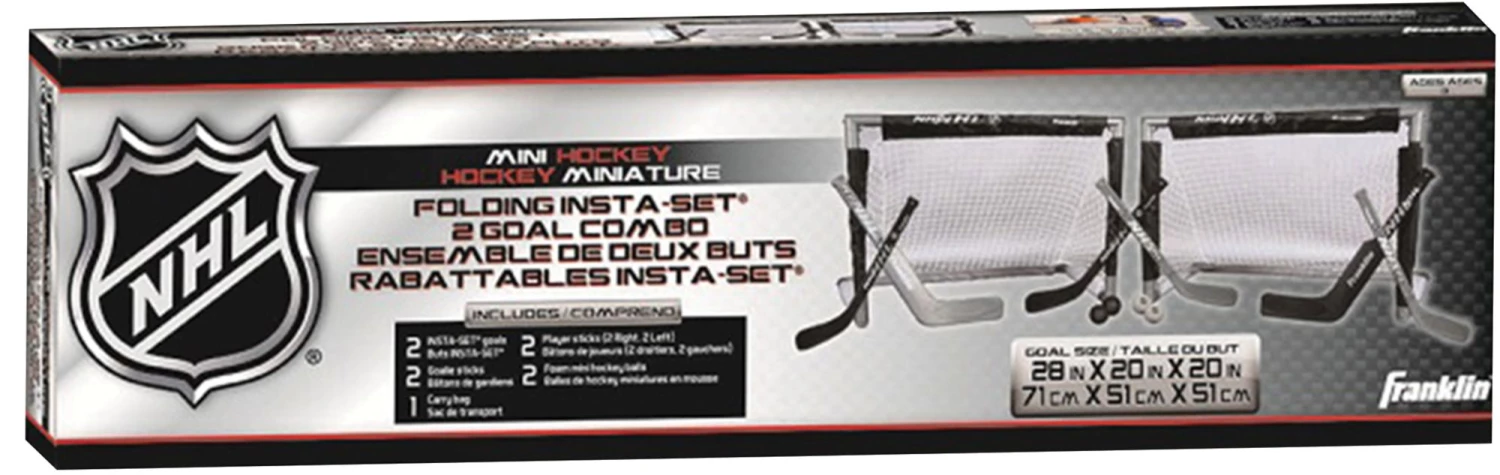 From knee hockey with friends to starting a young NHL® star young, the Franklin® NHL® Insta-Set Mini Hockey Goals includes everything you need for hours of indoor or outdoor fun.