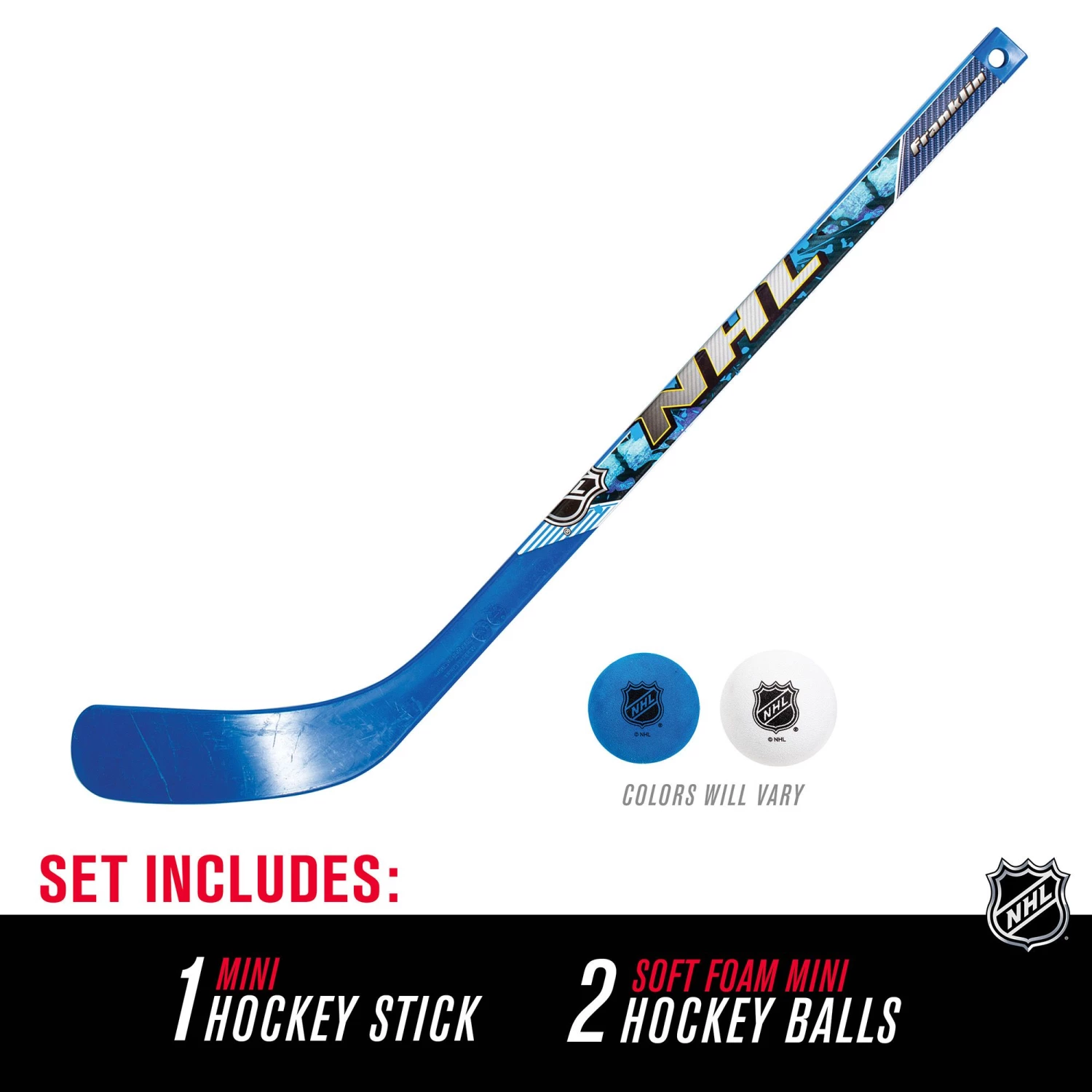 There is nothing mini about the Franklin® NHL® MEGA Mini Hockey Stick Set. The mega mini stick is a full 5 inches longer than standard mini hockey sticks. The extra length allows for easier control and more power per shot. The set includes a mega stick and 2 soft foam mini-hockey balls so you can get started playing right away.